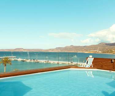 Itanos erbjuder ett mindre poolområde med solstolar och parasoll på hotellets takterrass. Föredrar du svalkande havsbad ligger stranden endast en kort proemenad från hotellet.