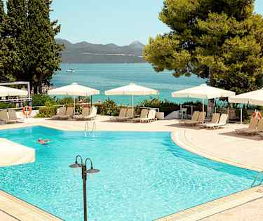 Porto Galini har två fina poolområden. Två av de tre barnpoolerna sitter ihop med den största poolen.