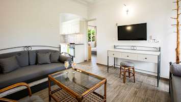 Villa Elia Resort erbjuder ljusa lägenheter med fina stendetaljer. Vill du se mer av ön är det endast några kilometer in till centrum av Lefkada som räknas som Lefkas huvudstad. Här finns ett bra utbud av restauranger, barer och shopping. Du kan även ta dig med hyrbil ner till badorten Nidri där du finner ett myllrande folkliv med restauranger och barer.