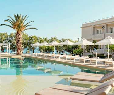 På Aquamare är poolen och stranden de naturliga mötesplatserna med underbar utsikt över havet. Stranden ligger ca 50 meter från hotellet och här kan du nyttja solstolar och parasoll utan kostnad (vid köp av något i poolbaren).