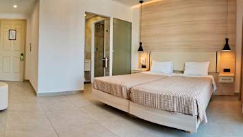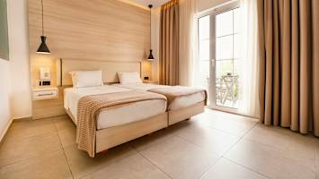 Rummen på Bella Vista är ljusa och inbjudande, inredda i neutrala färger som skapar en behaglig och harmonisk känsla. Här har du en perfekt bas för avkoppling efter en dag fylld av upplevelser vid poolen eller på stranden. Vid poolområdet kan du njuta av solens strålar i en skön solstol och ta ett uppfriskande dopp i poolen när värmen blir för påtaglig. Om du längtar efter havet ligger stenstranden bara några meter bort, perfekt för dig som vill känna vågornas sköna rytm. När det är dags att stilla hungern väntar hotellets restaurang med smakfulla rätter, och två barer erbjuder svalkande drycker och avkopplande stunder.