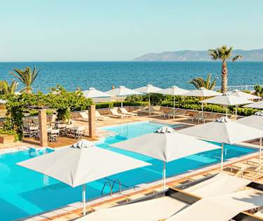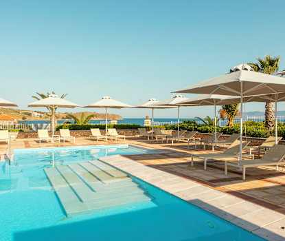 På hotellet finns pool och barnpool, båda med saltvatten. Ett litet stycke från hotellet finns en mindre stenstrand. En större sandstrand finns ca en kvarts promenad längs kustvägen från hotellet.