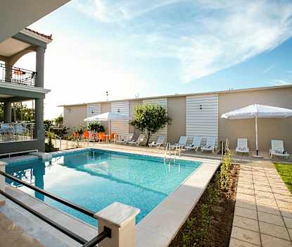 Sun & Sea Hotel har ett mindre poolområde med solstolar och parasoll.