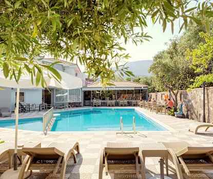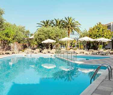Vid hotellets mysiga poolområde kan du njuta av sol och svalkande bad.