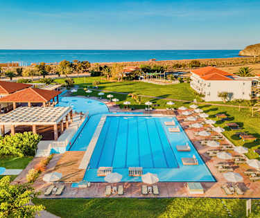 Aeolian Village har ett luftigt poolområde i hotellets trädgård och här kan stora som små gäster njuta av sköna bad och avkopplande stunder. På stranden direkt utanför hotellområdet erbjuder hotellet även solstolar och parasoll för sina gäster så här kan du enkelt kombinera poolbad med havsbad.