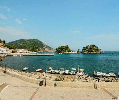 Den här stranden ligger tre kilometer söder om Parga. Även här finns solstolar och parasoller att hyra och vattensporter att utöva. Hit är det enkelt att ta sig med taxibåt, taxi, bil eller moped. Eller varför inte passa på att ta den fina naturstigen över berget?Sarakiniko-stranden