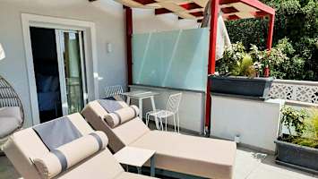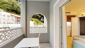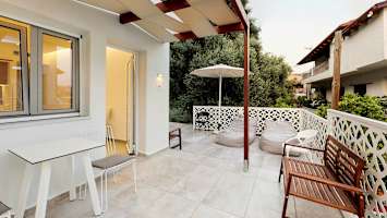 Theros erbjuder ljusa och fräscha lägenheter med balkong eller terrass. För det lilla extra rekommenderar vi en lägenhet på översta våningen med havsutsikt. Här kan du slå dig ner på balkongen efter en dag runt poolen och njuta av en vacker solnedgång och utsikten över havet och staden.