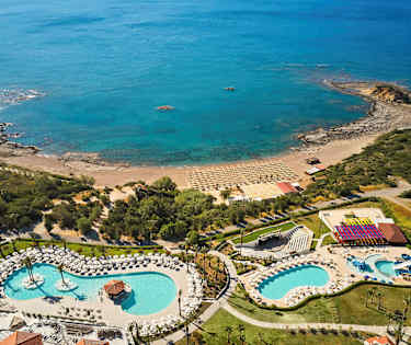 Det finns en vattenrutschbana för de minsta och tre lite större banor, där pooldjupet är 110 cm. På stranden nedanför hotellet erbjuder hotellet sina gäster gratis solstolar och parasoller.