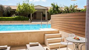 Hotellets eleganta poolområde lockar med sol, bad och avkopplande stunder. Här finns flera pooler och gott om solstolar och parasoll, perfekt för sköna dopp och härliga stunder i solen under ett parasoll. Precis intill hotellet ligger stranden, för dig som önskar svalkande havsbad.