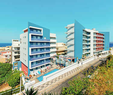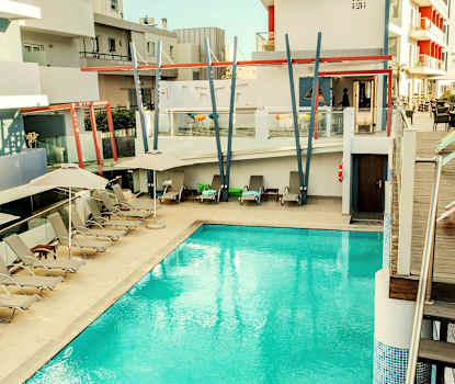 Semiramis har ett mindre poolområde där du kan ta svalkande dopp eller koppla av i en solstol.
