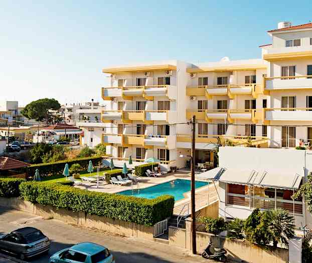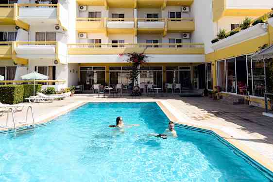 I hotellets lilla trädgård ligger poolområdet med två pooler, varav en barnpool som bjuder in till svalkande bad eller en avkopplande stund i skuggan. I anslutning till poolområdet finns en bar där det serveras dryck och snacks, och varje morgon serveras här en frukostbuffé. På Trianta Hotel Apartments bor du i rymliga lägenheter där samtliga har balkong och eget pentry, perfekt för dig som vill laga egen mat under semestern.