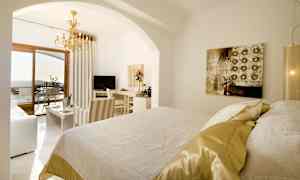 Det nyöppnade Hotell Gold Suites på ön Santorini vill erbjuda en romantisk miljö för par. Det har högt läge med glänsande vitkalkad fasad i utkanten av Imerovigli nära Fira och ruinerna efter det venetianska fortet Skaros. Här erbjuds fantastiska vyer mot Calderan och avskildhet i de välutrustade sviterna. Hotellet ligger 3 kilometer från centrum i Fira, 3,5 kilometer från stranden och 7,5 kilometer från inrikesflygplatsen Santorini Thira.