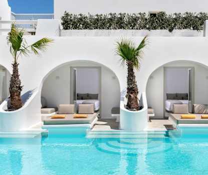 Sviter har även sällskapsutrymme, bäddsoffa samt badrock och tofflor.