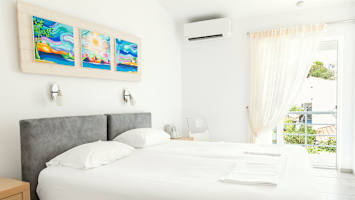Anemoni Beach erbjuder ljusa och fräscha dubbelrum för upp till tre personer. Du kan själv välja om du vill ha ett rum med balkong eller terrass och utsikt mot omgivningarna eller poolområdet. För lite extra semesterlyx kan du boka ett dubbelrum med begränsad havsutsikt.