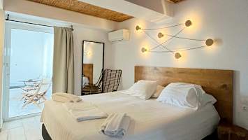 Megali Ammos House erbjuder smakfullt inredda enrumslägenheter för upp till fyra personer. Du väljer själv om du vill bo i den bakre eller främre byggnaden, samt vilken utsikt du vill ha, när du bokar din resa.