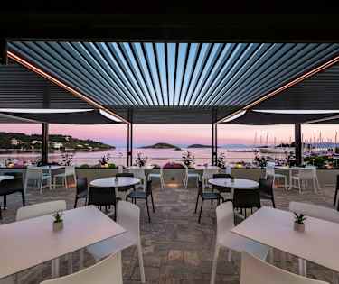 Alkyon har en frukostrestaurang som ligger på översta våningen av hotellbyggnaden, med en takterrass och fantastisk utsikt över hamnen och havet. I bottenvåningen av hotellet finns en pool/lobbybar som erbjuder snacks och enklare rätter, samt en à la carte-restaurang med medelhavsinspirerat kök. Önskar du gå ut och äta, finns det många caféer, restauranger och barer i området utanför hotellet.