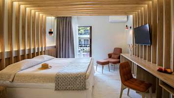 Hotel Bourtzi är ett stilrent och modernt boutiquehotell med perfekt läge mitt i hjärtat av Skiathos stad. Här bor du bekvämt och nära allt – från mysiga tavernor och trendiga caféer till små butiker och det livfulla kvällslivet. Kombinationen av hotellets snygga design och den trevliga atmosfären gör att många gäster gärna återvänder år efter år.