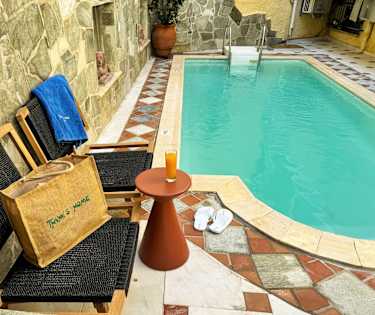 Inne i Skiathos stad finns inga stränder, men vissa gäster väljer att bada vid Bourtzi-halvön. Det är också möjligt att ta sig Siferi och Megali Ammos som ligger strax utanför stadskärnan. Siferi är en mindre strand, där det finns ett par matställen och solstolar att hyra och Megali Ammos är en längre grovkornig sandstrand, där det finns det gott om tavernor och caféer. I början av säsongen, fram till mitten av juni, pågår tilldelningen av licenser för uthyrning av bland annat solstolar, strandbarer och tavernor. Detta kan medföra att dessa faciliteter inte finns tillgängliga på stranden förrän tilldelningen är avslutad.