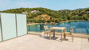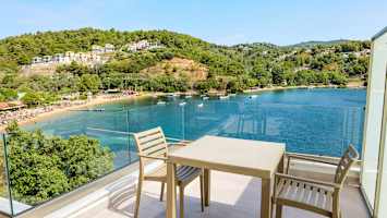 På Västra Skiathos finns ett tjugotal stränder, perfekt för en semester med mycket avkoppling. Här finns allt från den berömda Koukonariesstranden och Agia Eleni i väster till populära Vromolimnos och den inbjudande bukten i Achladies i öster. Mellan dem finns en uppsjö av större och mindre stränder, ofta med en liten taverna där du kan äta lunch och få något svalt att dricka. På den västra änden av sydkusten ligger även Banana Beach, en vacker sandstrand som är särskilt populär bland ungdomar i högsäsong.