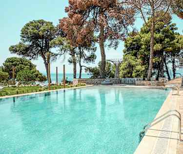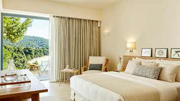 Hotellet består av fyra olika områden utspridda i ett naturskönt område, vid några av Skiathos finaste stränder.