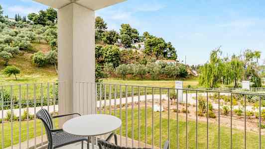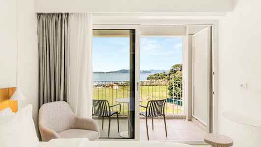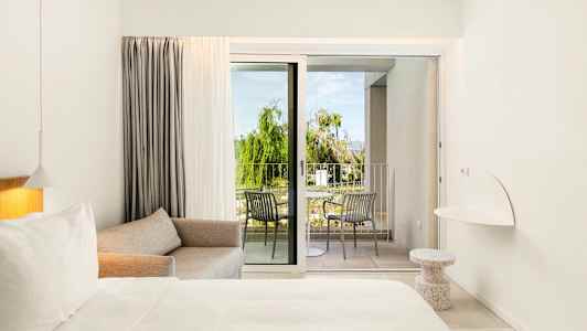 Radisson Resort Plaza Skiathos erbjuder fina dubbelrum med balkong, du väljer själv vid bokning om du vill ha utsikt mot omgivningarna, poolen eller havet.
