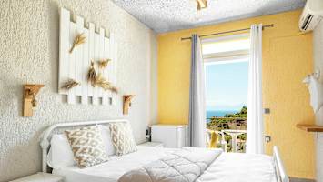 Hotel Ariadne passar dig som söker ett litet och personligt boende i vackra omgivningar och som har starka ben, då en brant backe leder upp till hotellet från stranden.