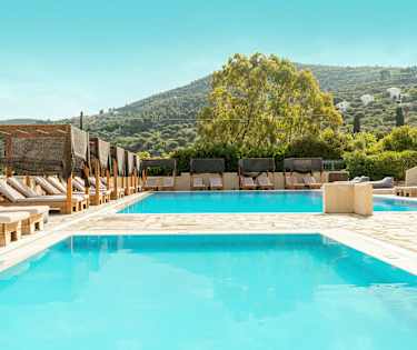 Skopelos Holidays Hotel & Spa har en större pool och en mindre, grundare pool som passar äldre, simkunniga barn.