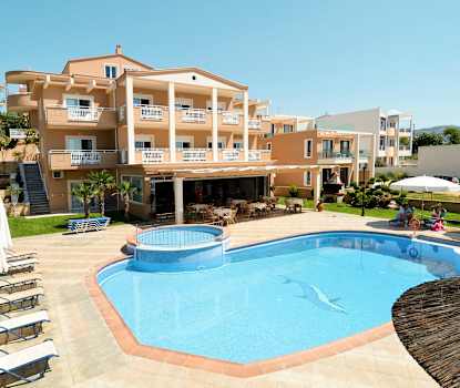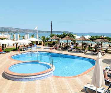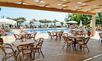 Hotellet har ett litet och trevligt poolområde. Solstolar och parasoll på stranden ingår för hotellets gäster vid köp av dryck i hotellets bar.