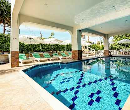 Garden Hotel har ett litet poolområde med solstolar och parasoll. Vill du bada i havet ligger stranden cirka 200 meter från hotellet.