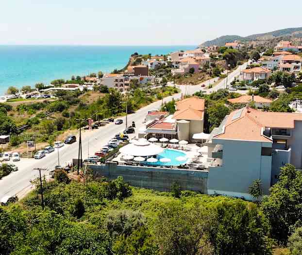 The Dome hotel är ett trevligt hotell nära både stranden och centrum. Hotellet ligger strax utanför Limenaria, Thassos näst största stad som bjuder på en trevlig strand med en strandpromenad, härligt folkliv och mysiga restauranger.