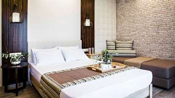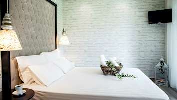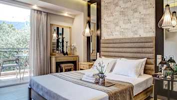 Hotellet erbjuder moderna dubbelrum och juniorsviter med hemtrevlig inredning för upp till fyra personer. I hotellets grönskande trädgård finns ett mysigt poolområde med solstolar som bjuder in till avkopplande stunder och sköna dopp. I anslutning ligger även poolbaren där du kan beställa enklare rätter och uppfriskande drycker.