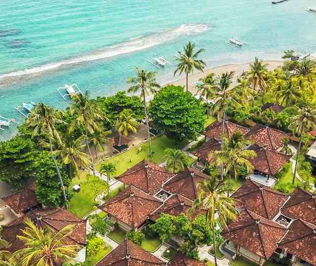 Puri Bagus Candidasa ligger vid stranden i Candidasa på Balis östra kust. Hotellet är byggt i traditionell, balinesisk stil och består av flera villor utspridda i en grönskande trädgård.