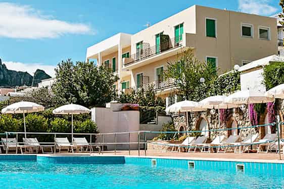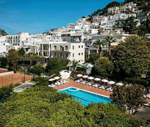 I hjärtat av Capri stad ligger hotellet Syrene, ett trevligt hotell med bra service. Från hotellet är det promenadavstånd till piazzettan, restauranger och exklusiv shopping. En längre promenad tar dig till stränderna Spiaggia Torre Saracena och Spiaggia di Marina Piccola på Capri.