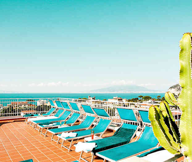 Caravel ligger i lugna omgivningar och har en vacker utsikt över havet. Hotellet ligger i stadsdelen Sant'Agnello, utanför Sorrento. Caravel har en mysig, grönskade trädgård och ett härligt poolområde som bjuder in till avkoppling och svalkande bad. Vill du bada i havet ligger stranden på promenadavstånd. Uppe på taket finns även en solterrass med en vacker utsikt över havet.