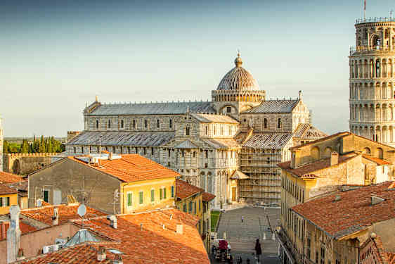 Den vackra, medeltida stadskärnan omges av en stadsmur och delas på mitten av floden Arno. Här kan du njuta av en mängd arkitektoniska mästerverk, många av de 10 000 torn som en gång präglade stadsbilden på 1200-talet finns fortfarande kvar. Du som är intresserad av historia och kultur kan verkligen få ditt lystmäte här. Under din resa till Pisa får du förstås inte missa det berömda tornet, som ligger på Piazza dei Miracoli i den norra delen av staden. I anslutning till det lutande tornet ligger också domkyrkan Duomo di Pisa, dopkapellet Battistero di San Giovanni och kyrkogården Camposanto monumentale som också är värda ett besök.