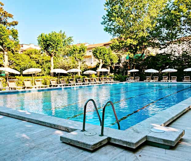 På Grand Hotel Royal bor du nära den långa, härliga sandstranden i Viareggio. Den storslagna byggnaden i jugendstil har genom åren blivit ett välkänt landmärke för staden. Här finns en stor, lummig trädgård och ett fint poolområde, samt bar och restaurang där du kan prova på toskanska specialiteter. På Grand Hotel Royal finns cykeluthyrning för dig som vill utforska de närmaste omgivningarna, och vill du uppleva mer av Toscana har du städerna Pisa och Lucca inom bekvämt räckhåll från Viareggio.