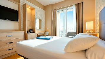 I hotellets fräscha och populära spa med bland annat inomhuspool och massageduschar kan du unna dig en skön behandling under semestern. Vill du även ta hand om kroppen med lite träning erbjuder hotellet gym. På hotellet finns en bufférestaurang där du kan starta dagen på bästa sätt med en stärkande frukostbuffé och på åttonde våningen hittar du en trivsam bar med sköna fåtöljer.