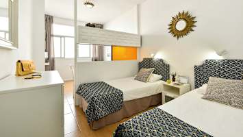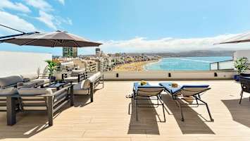 Don Carlos är ett populärt lägenhetshotell med många återkommande gäster och ett perfekt läge precis vid den fina stranden Las Canteras i Las Palmas. Här bor du bara några steg från ett svalkande bad i havet och kan njuta av den långa strandpromenadens trevliga utbud av restauranger, barer och caféer. När du blir sugen på att shoppa kan du ta dig till strandpromenadens södra ände där shoppingcentret Las Arenas ligger, eller så går du bara in några kvarter från stranden för att finna mindre, lokala butiker i stadskärnan. Centralt hittar du även varuhuset El Corte Inglés och varje söndag hålls en marknad vid Santa Catalina-parken, som bara ligger 900 meter från hotellet.