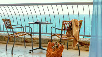 - Två solstolar på balkongen