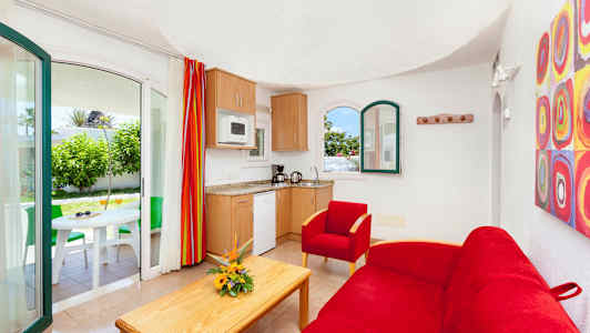 Bungalowerna har rymliga och möblerade terrasser som passar perfekt för att äta frukost, lunch eller middag på. Vill du inte laga mat själv har MUR Parque Romantico en omtyckt restaurang som är väl värt ett besök.