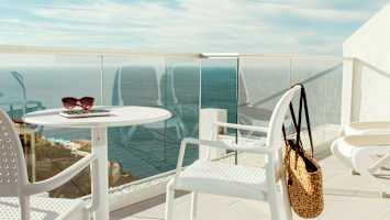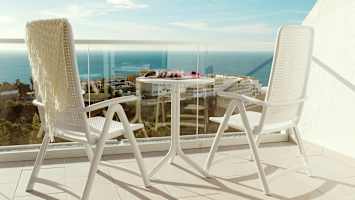 - Balkong eller terrass (10-15 m²) med två solstolar