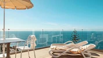 - Större balkong (ca 42 m²) med parasoll och fyra solstolar