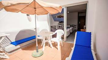 Tvårumslägenhet med balkong eller terrass (ovanför eller nedanför poolen)