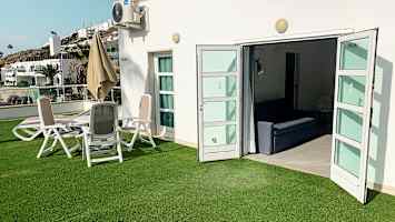 Tvårumslägenhet med balkong i markplan och bubbelpool i Terrazamar-byggnaden