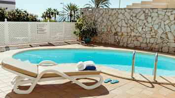 Trerumslägenhet med 4 ordinarie bäddar i Casamonte med privat pool, mot gatan