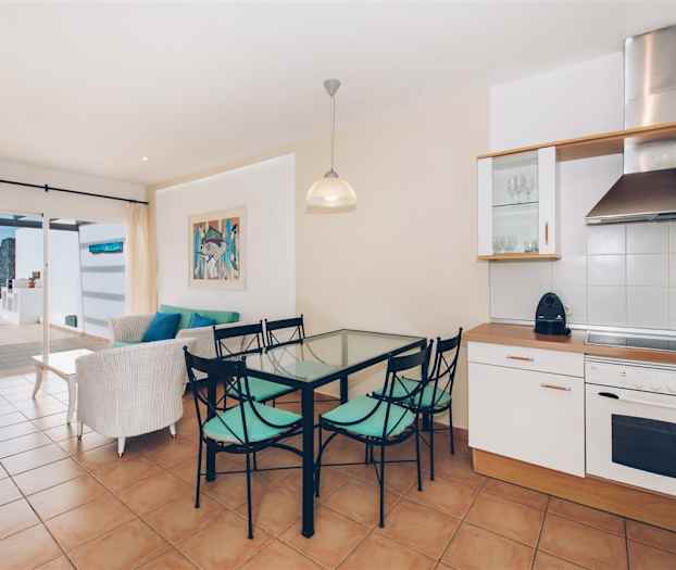 Bungalows utrustade med 2 sovrum med fläkt, 2 badrum (kar/dusch), luftkonditionering (endast i sällskapsutrymme), trådlöst internet, satellit-TV, DVD-spelare, säkerhetsfack, möbleras terrass, fullt utrustat pentry med kylskåp, kokplattor, kaffebryggare Nespresso och ugn.