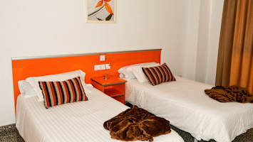 - Reception, och incheckning på närliggande hotell Solmar (ca 200 meter bort och med trappor upp till entrén), begränsade öppettider