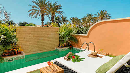 På hotellet väntar ett stort och inbjudande poolområde. Här kan du slå dig ner i en skön solstol eller sjunka ner i en balisäng medan barnen leker i sin egen grundare pool. Vill du ta en paus från solen eller avrunda kvällen hittar du svalkande drycker i baren Las Palmeras. I bufférestaurangen med samma namn samlas både lokala smaker och internationella klassiker. Det blir enkelt för hela familjen att hitta något som passar, oavsett om du föredrar lite av varje eller en tydlig favorit. För en extra bekväm semester kan du köpa till frukost, halvpension eller All Inclusive.