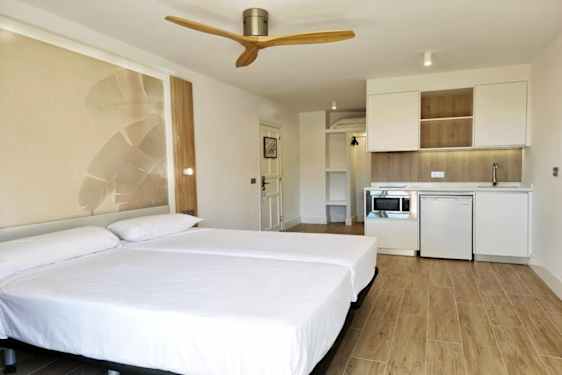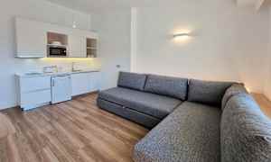 Lägenheterna är utrustade med badrum/dusch, vardagsrum med bäddsoffa och TV, pentry med kokplattor och kylskåp, värdeskåp (återbetalningsbar deposition) och alla lägenheter har balkong eller terrass