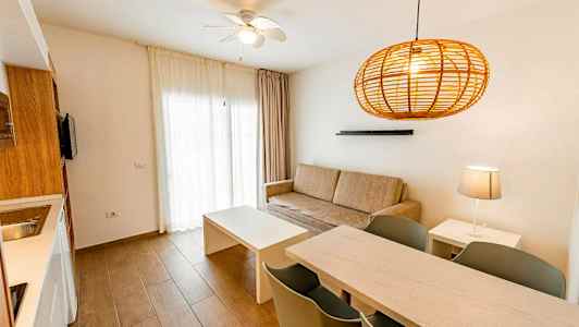 Du bor i stilrena lägenheter, och vill du ha en extra bekväm semester beställer du måltider innan du reser – det finns allt från frukostbuffé till All Inclusive att välja på.